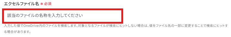 注釈に沿って「エクセルファイル名」を手動で入力してください。