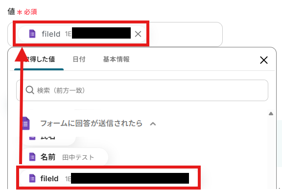 「取得した値」について、詳しくは以下をご覧ください。