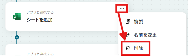 Microsoft Excelの「シートを追加」オペレーションは削除しておいてくださいね。