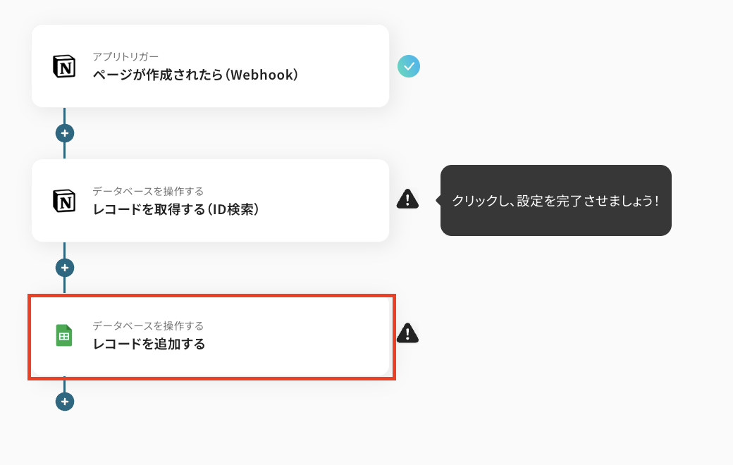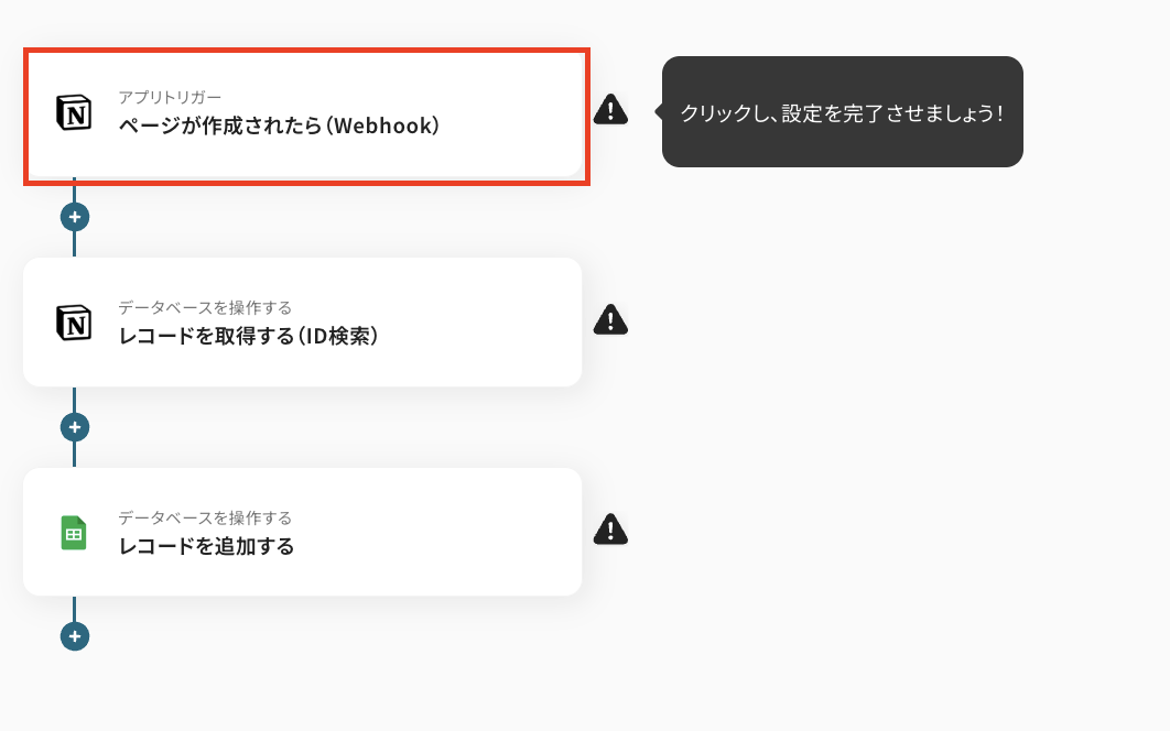 それではここから代表的な例として、「Notionに新しいページが作成された際に、そのページ情報をGoogle スプレッドシートに自動で入力する」フローの作成手順を解説していきます!