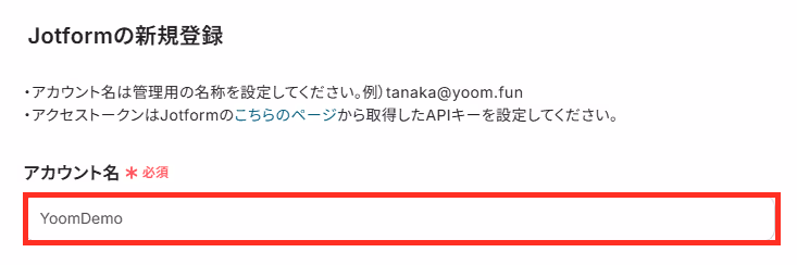 「アカウント名」は、任意で管理用名称を設定してください。