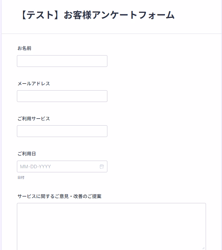 今回は以下のフォームを、Jotformで作成しました。