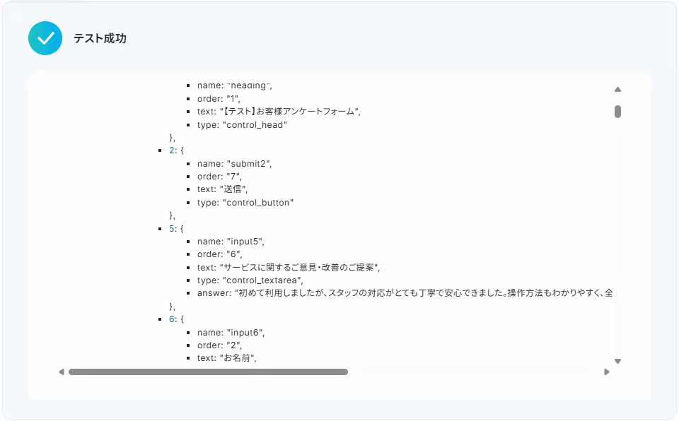 また、本来取得した値に情報が追加されますが、Jotformは手動で追加する必要があります。