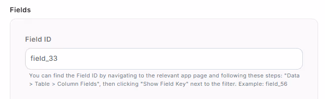 「Field ID」は、Knack上の該当カラムのField IDを指定します。