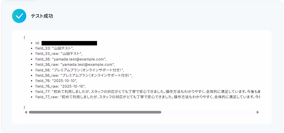 完了したらYoomに戻り「テスト」をクリックしましょう。