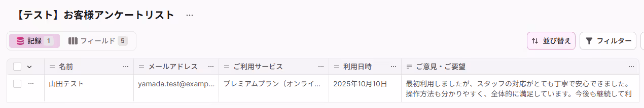 これにより、顧客情報やアンケート結果を迅速かつ正確に管理できるようになり、本来時間をかけるべき分析や次のアクションの検討といったコア業務に集中できる環境が整います!