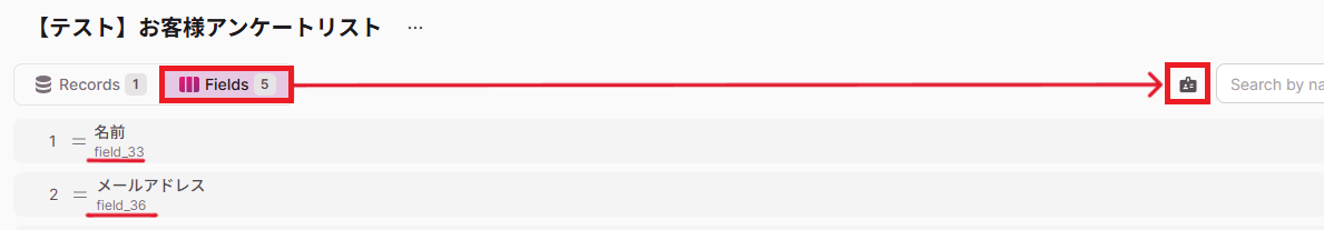 Fieldsの横にある「Hide Field Key」をクリックすることで確認できます。