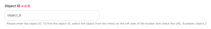 「Object ID」は、連携先にしたいObject IDを設定します。 オブジェクトのURLから取得可能です。