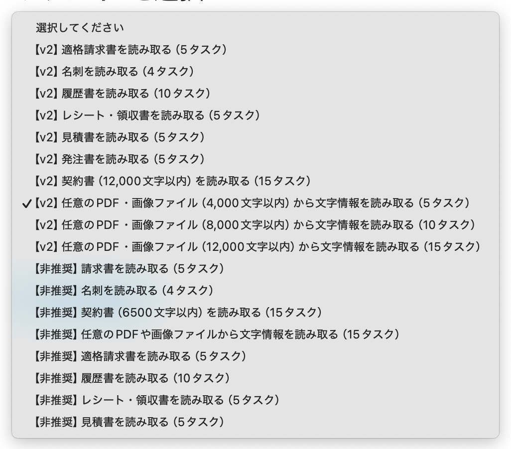 ・YoomのOCR機能では、アクション記載の規定の文字数を超えるデータや、文字が小さすぎる場合に正しく読み取れないことがあります。文字数や文字の大きさには少し余裕を持たせてご利用ください。