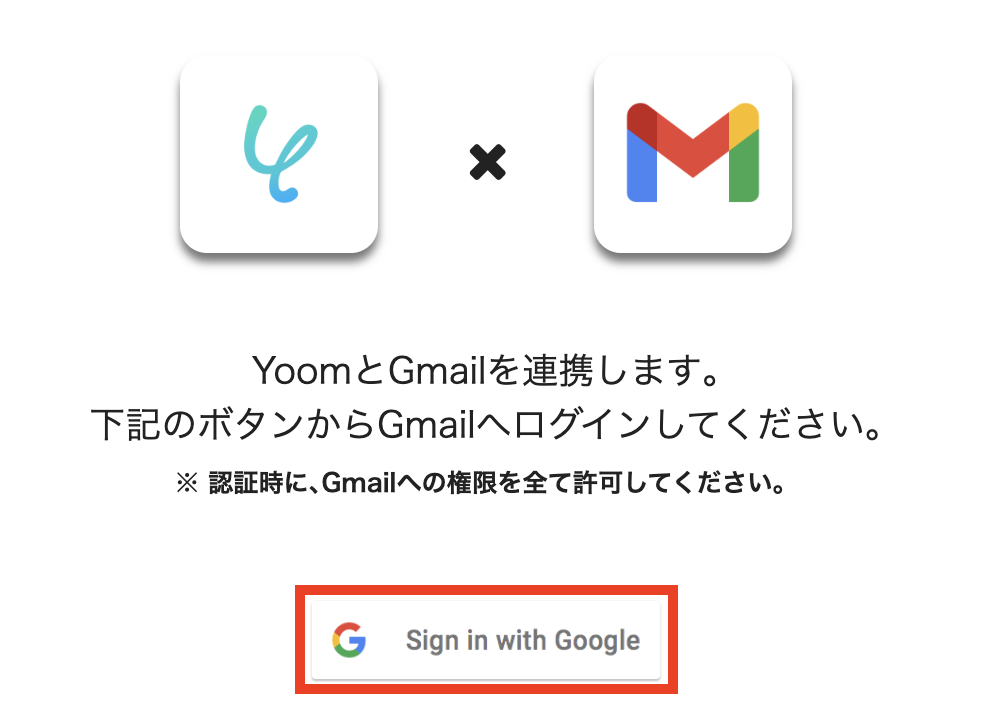 以下の画面で「Sign in with Google」をクリックし、連携したいGoogleアカウントにログインします。