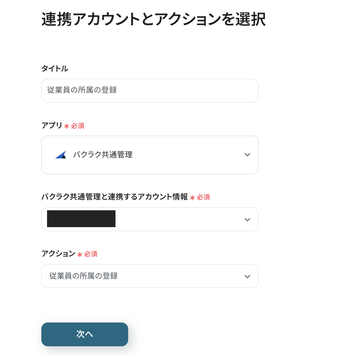 ステップ6:バクラク共通管理アクション(所属登録)の設定