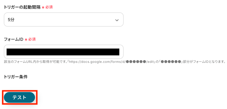 入力欄の下にある補足説明を参考に、URL内のフォームID(画像の黒塗り部分)をコピーして貼り付けてください。