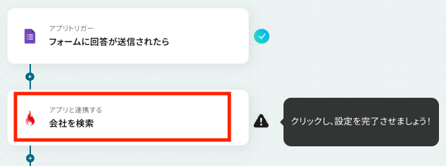 このステップでは、Googleフォームに送信された会社の情報をホットプロファイルで検索する設定を行います。