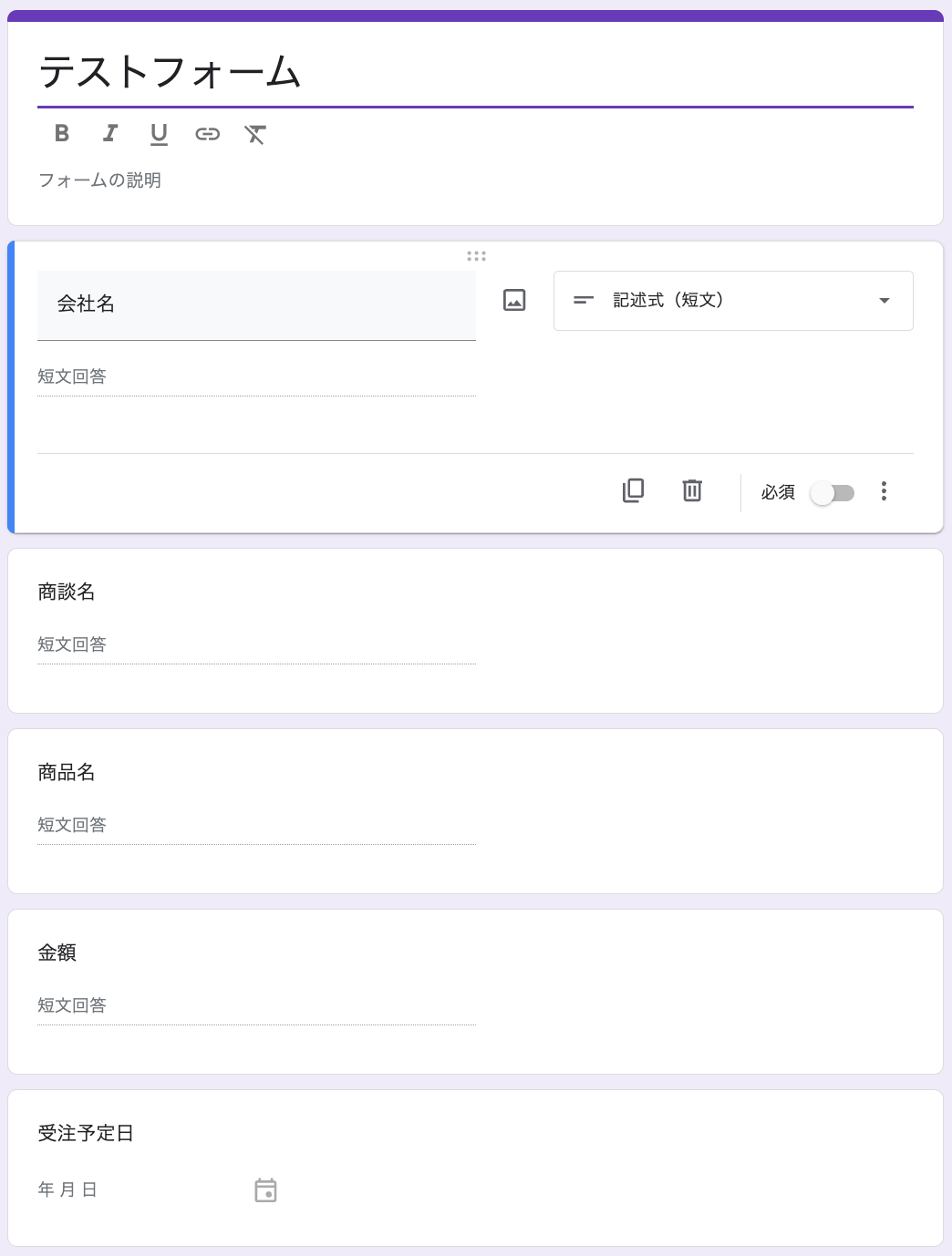 フローを作成する前に、テスト用のGoogleフォームを用意しましょう。