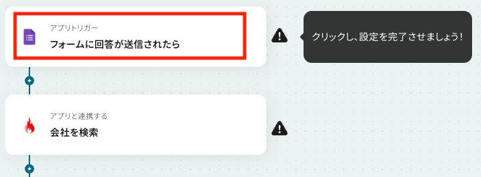 ここからは、Googleフォームに回答が送信された際に、その内容をもとに自動でホットプロファイルに商談情報を自動で登録するフローを作成します。