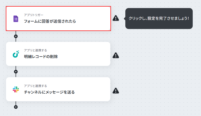 それではここから代表的な例として、Googleフォームに新しい回答があった際に、その内容をもとにJUST.DBの明細レコードを自動で削除するフローを解説していきます!