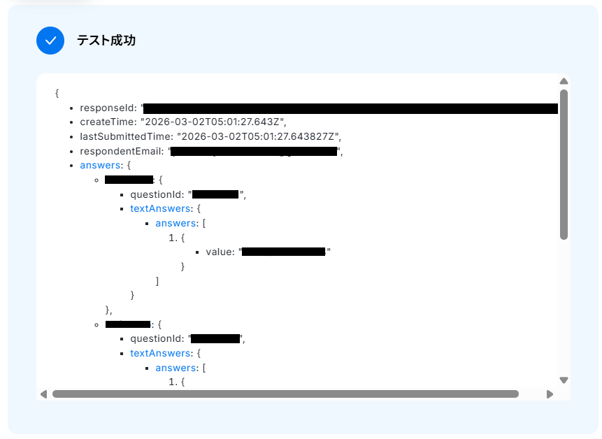 今回ご紹介するテンプレートは、Googleフォームに回答が送信されたら起動します。