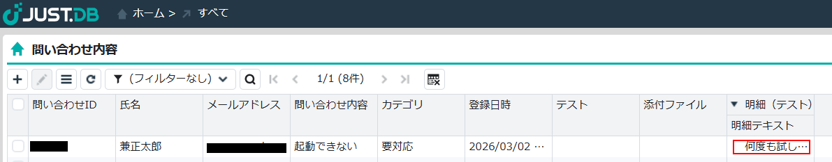 ・JUST.DBにレコードが登録されるたびに自動的にkintoneにも追加されるため、迅速な対応が可能になります。