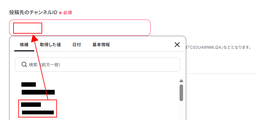 入力欄をクリックし、表示された候補の中から使用したいチャンネルを選択しましょう。