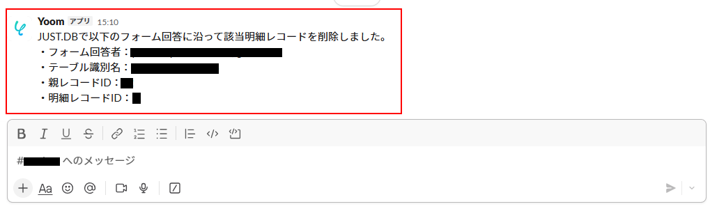 Slackのチャンネルにメッセージが送信されていますのでご確認ください。