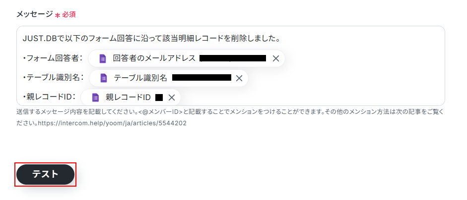 ※テストをクリックすると、実際にチャンネルにメッセージが送信されます。