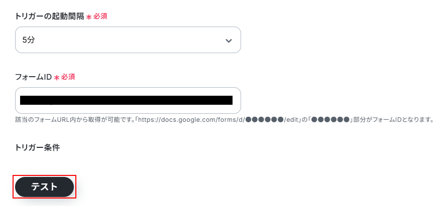 注釈を確認しながら先ほどコピーしたURLからフォームIDを抜き出して入力しましょう。