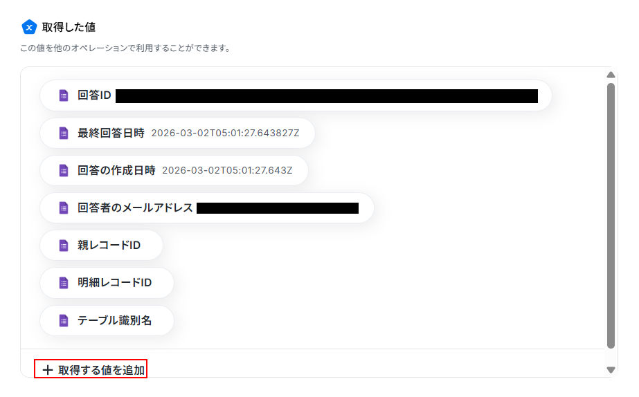 そのため、利用したい値が取得した値の項目内に表示されていない場合は値を追加する必要があります。
