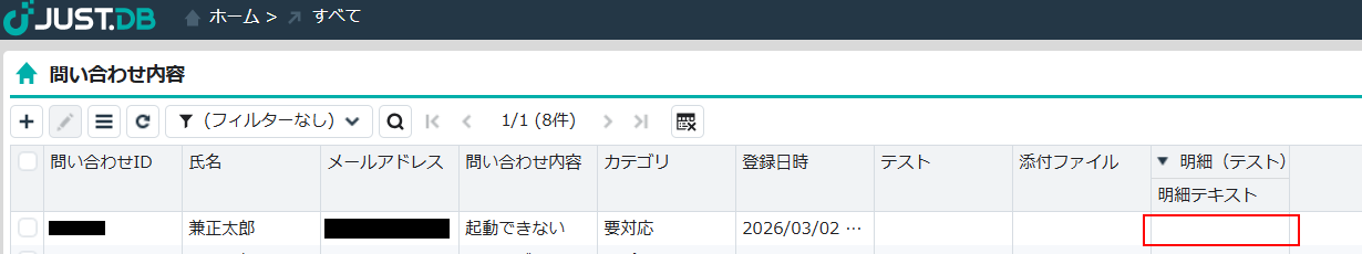 テストをクリックすると実際に明細レコードが削除されます。