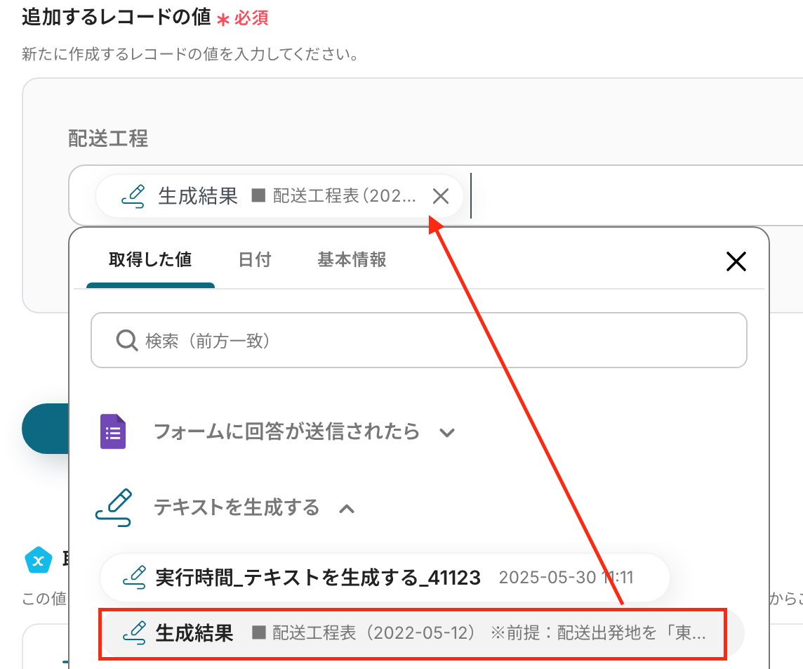 ※以下の画像のように、「任意で作成した文章」と「先ほど取得した値」を組み合わせて自由に設定してください。