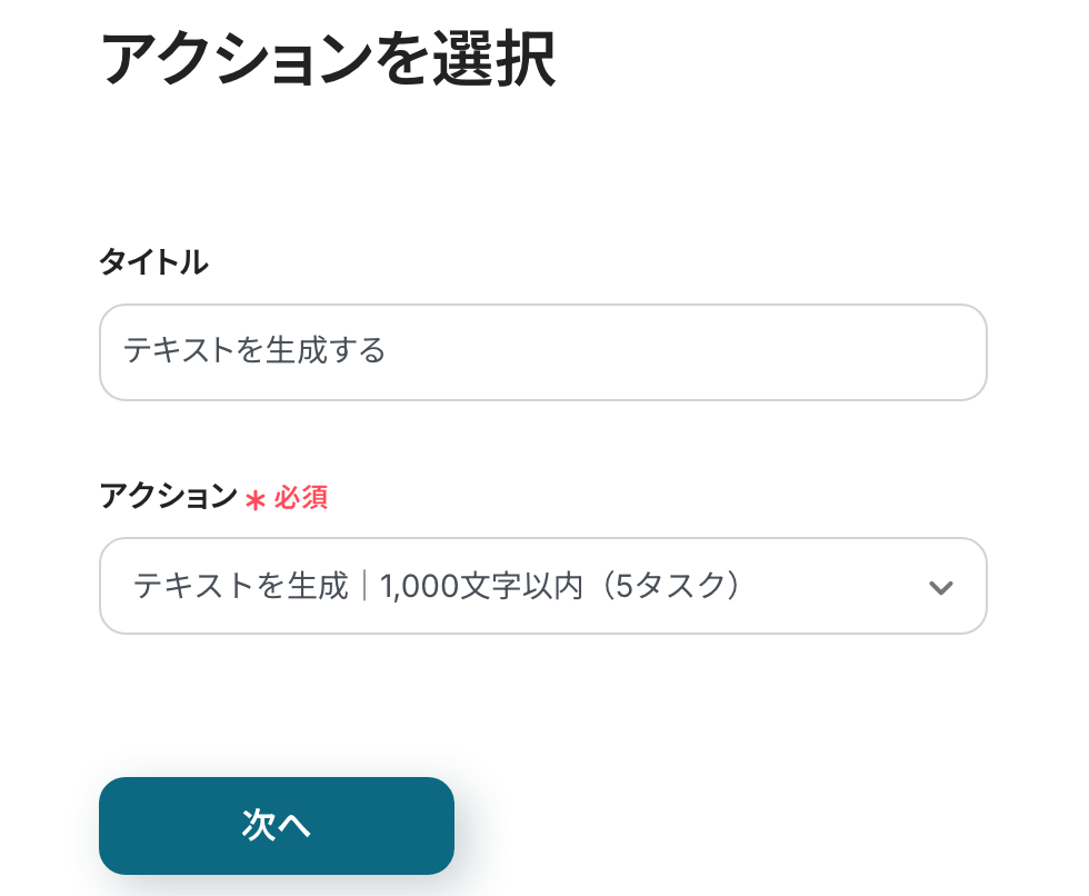 ※アクションは、読み取りたい文字数やタスク数に応じて選択してください。