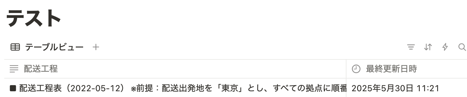 テスト成功と表示されたら、Notionにレコードが追加されたか確認をしてください。