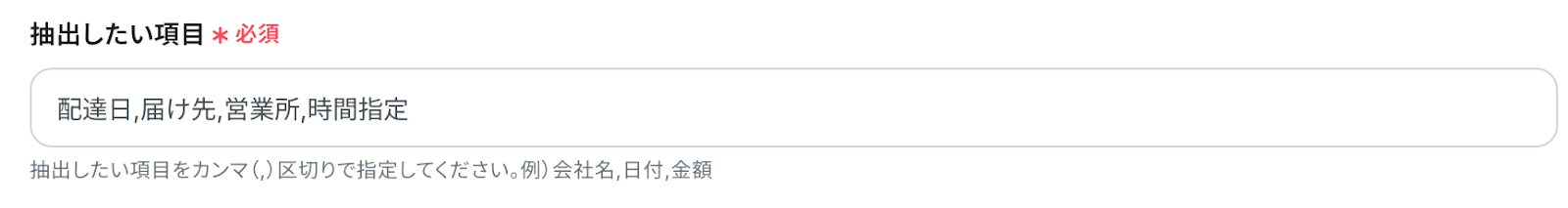 入力欄下の注釈を参考に、画像・PDFから読み取りたい項目を入力してください。