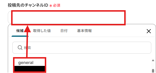「投稿先のチャンネルID」を候補から選択しましょう。