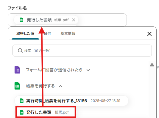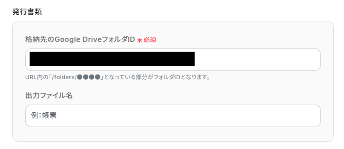 3.発行書類は入力欄をクリックするとGoogle DriveのフォルダIDが表示されるので、任意のIDを選択してください。