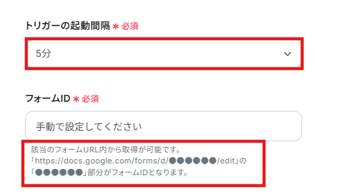 5.先ほど作成した「フォームID」を入力します。