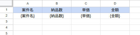 なお、今回はテスト用で以下のようなシートを作成しました!