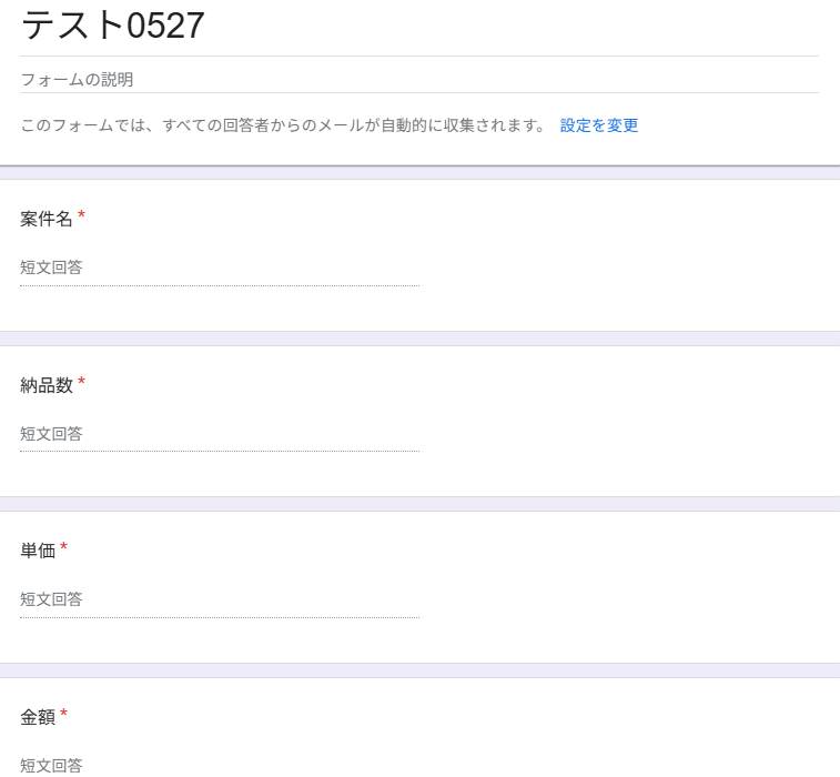 3.続いて、Googleフォームでテスト用のフォームを作成し、回答しましょう!