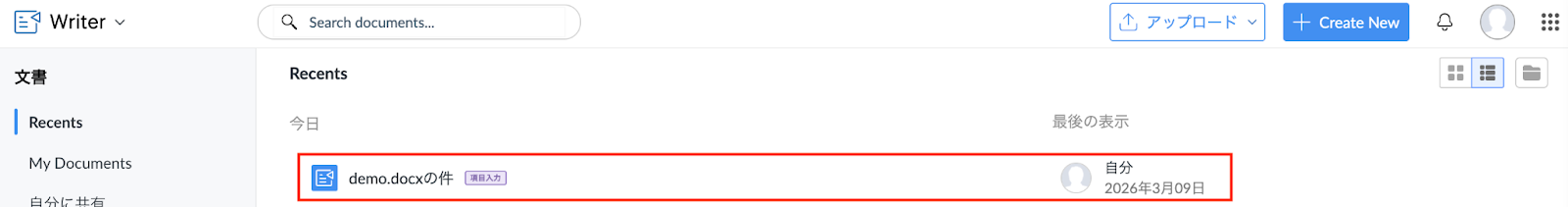 GoogleドキュメントからZoho Writerに新規ドキュメントを作成する