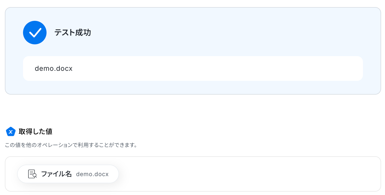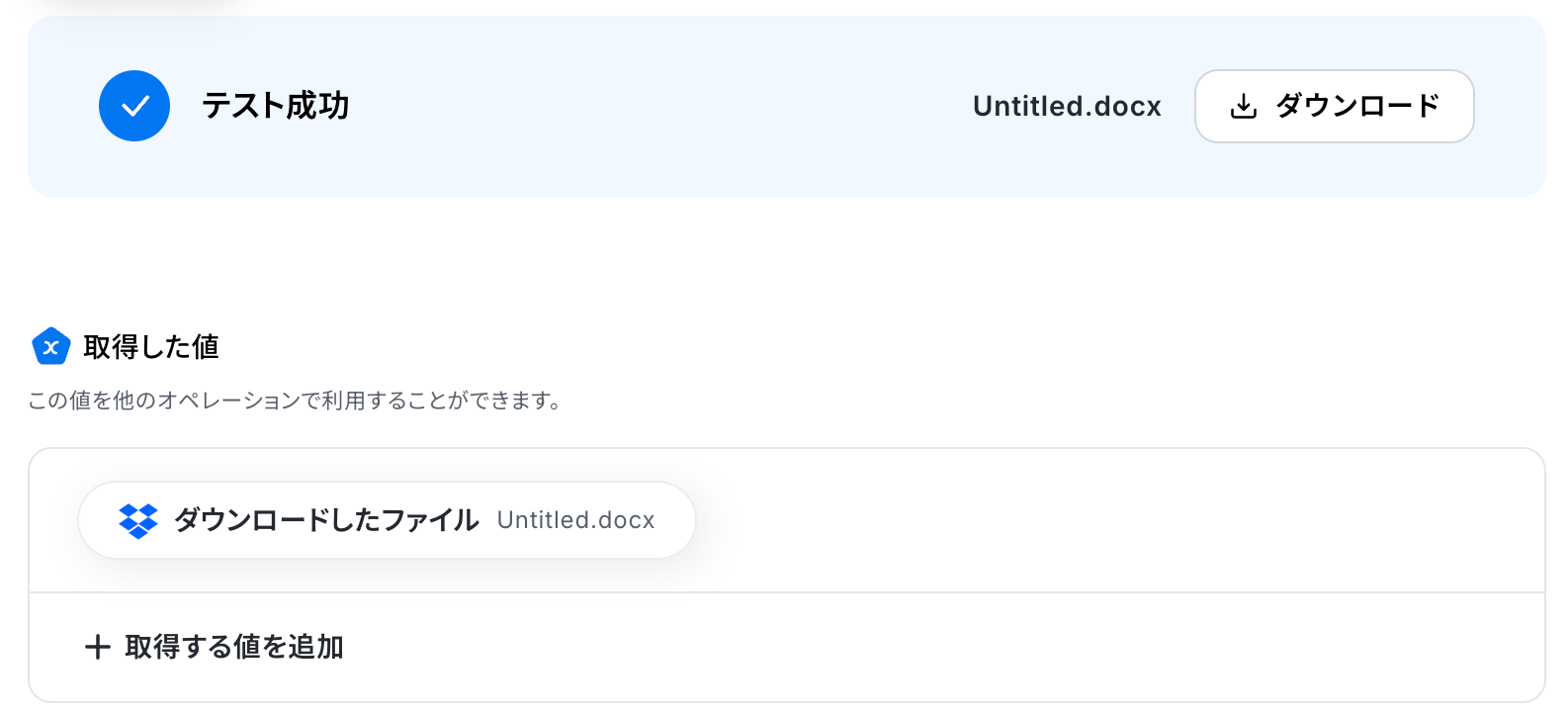 - Dropboxでファイルをダウンロードするアクションでは、対象となるフォルダのパスやファイル名を固定値で指定したり、前段のステップで取得した値を引用して動的に設定したりできます。