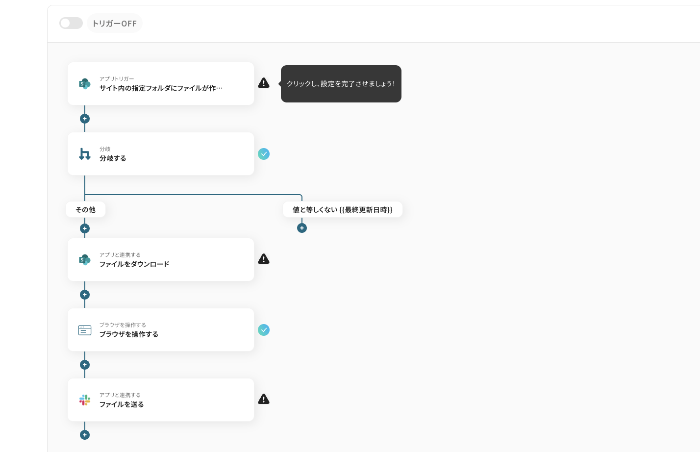 Microsoft SharePointのトリガー設定とSlackなどのアクション設定