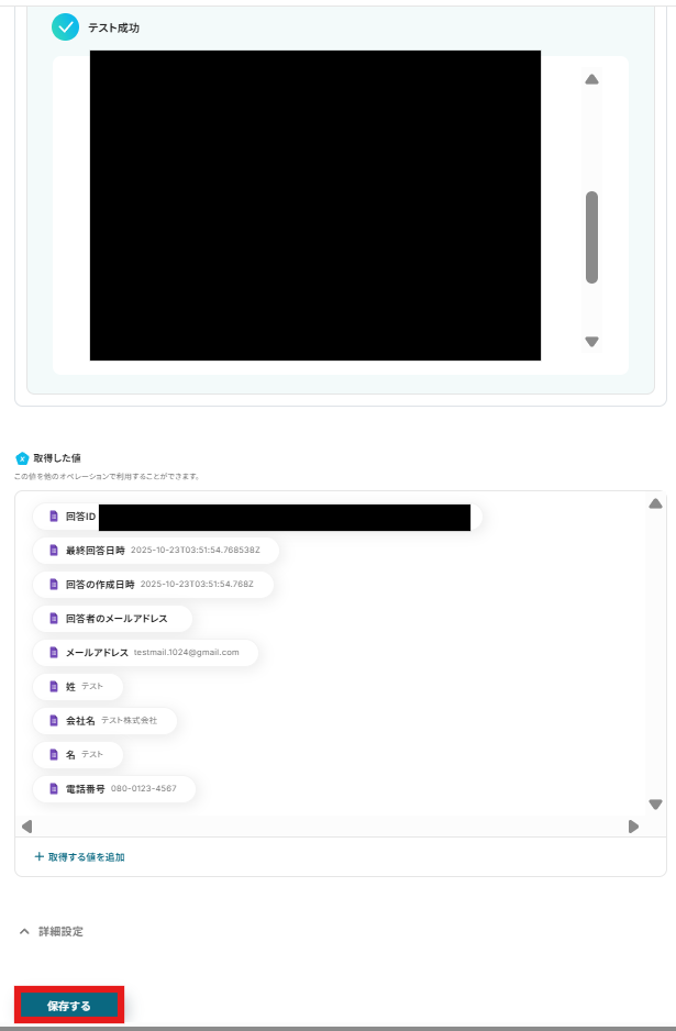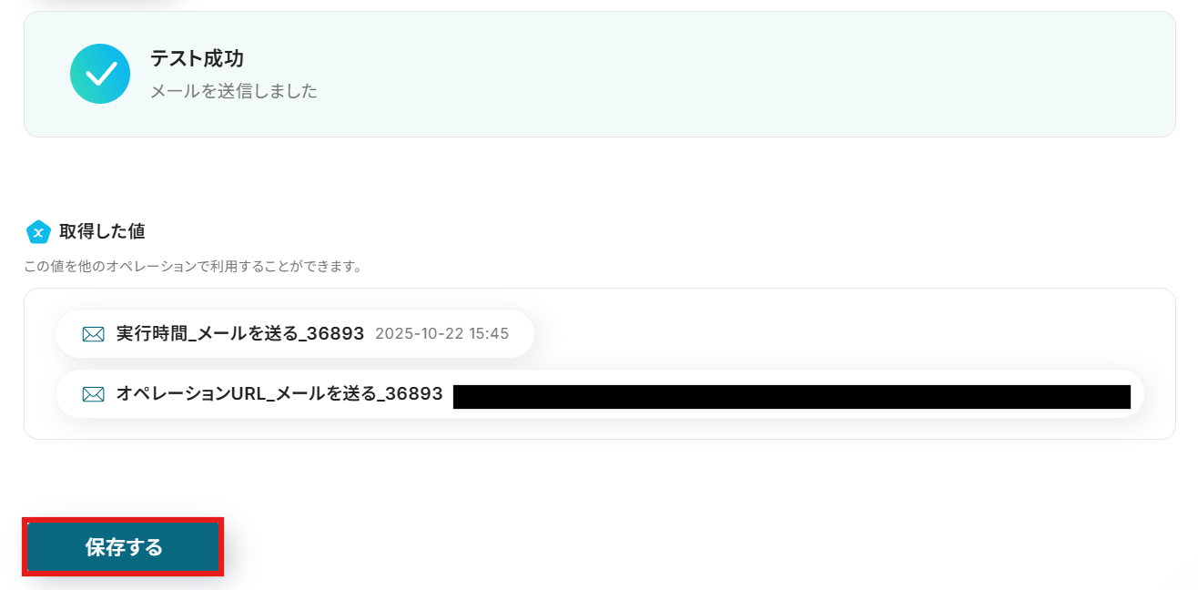 確認できたら、Yoomの画面に戻り「保存する」をクリックします。