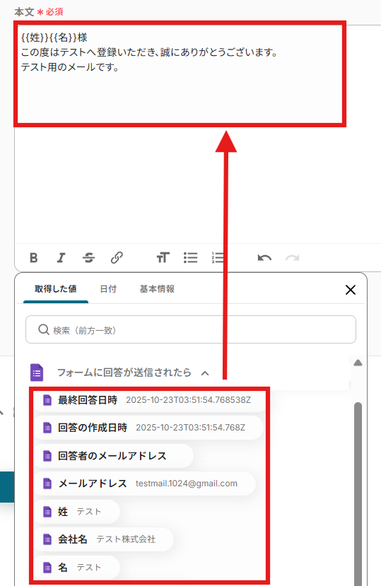 取得した値と手動入力を組み合わせて、内容を独自にカスタマイズできます。