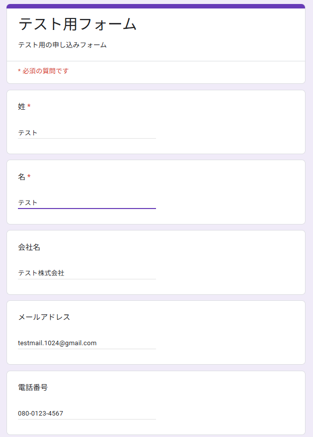 次に、この後行うテストで使用するGoogleフォームを準備し、回答の送信まで済ませておきましょう。