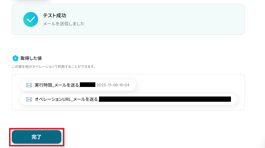 確認できたら、Yoomに戻り「完了」を押してください。