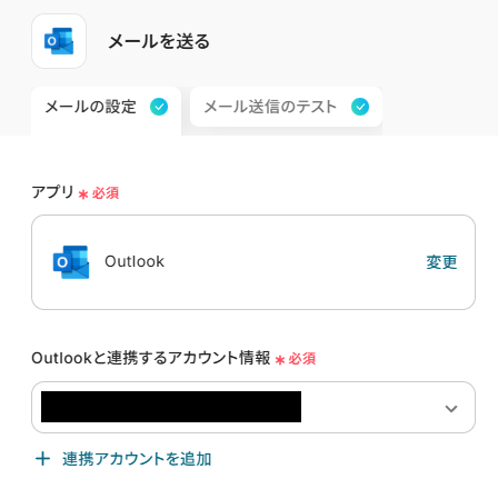 Outlookと連携するアカウントに間違いがないかを確認してください。