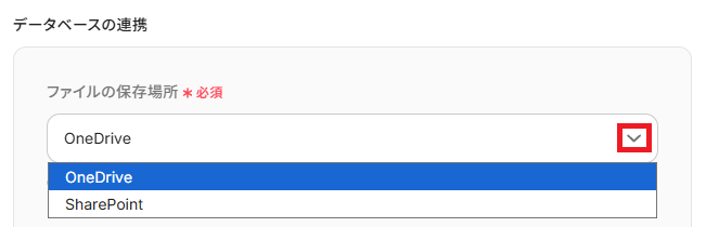 ・ドライブID/サイトID:OneDriveの場合はドライブID、SharePointの場合はサイトIDを選択します。
