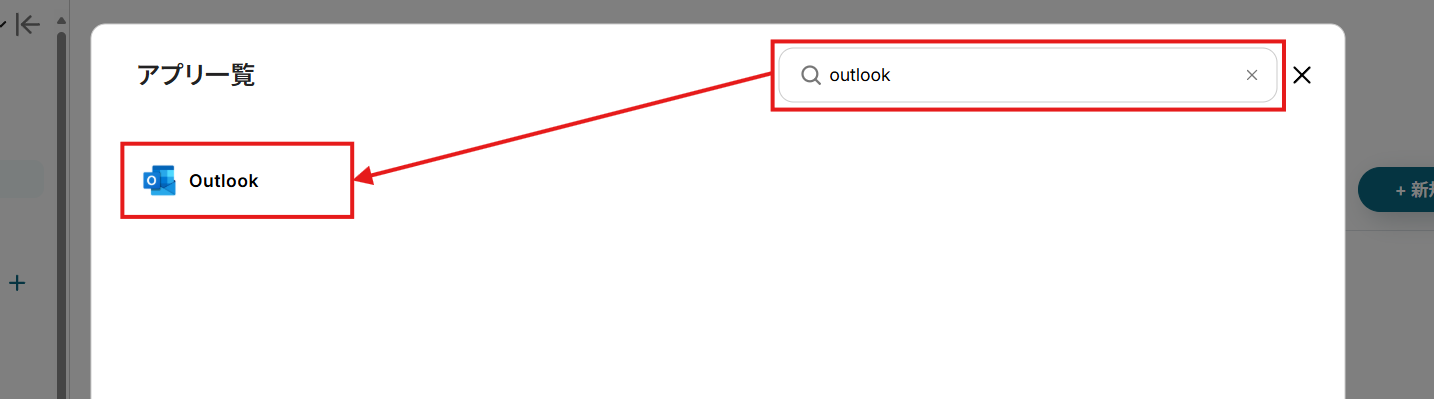 - アプリ一覧画面が表示されたら、右上の検索バーでアプリ名(ここではOutlook)を検索して選択。
