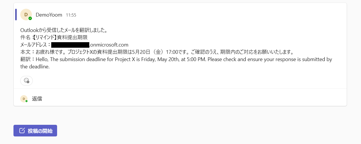 Outlookで受信したメールの内容を翻訳し、Microsoft Teamsにも共有する