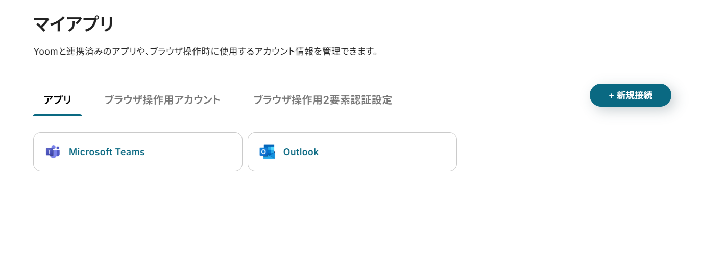 ・Outlook、ZoomのそれぞれとYoomを連携してください。