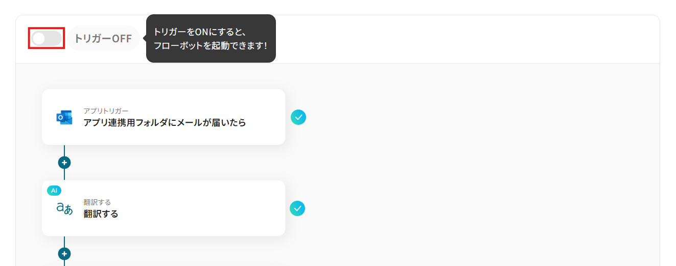 あとで稼働させる場合は、フロー画面のトリガースイッチをクリックすることで、トリガーをONにできます。
